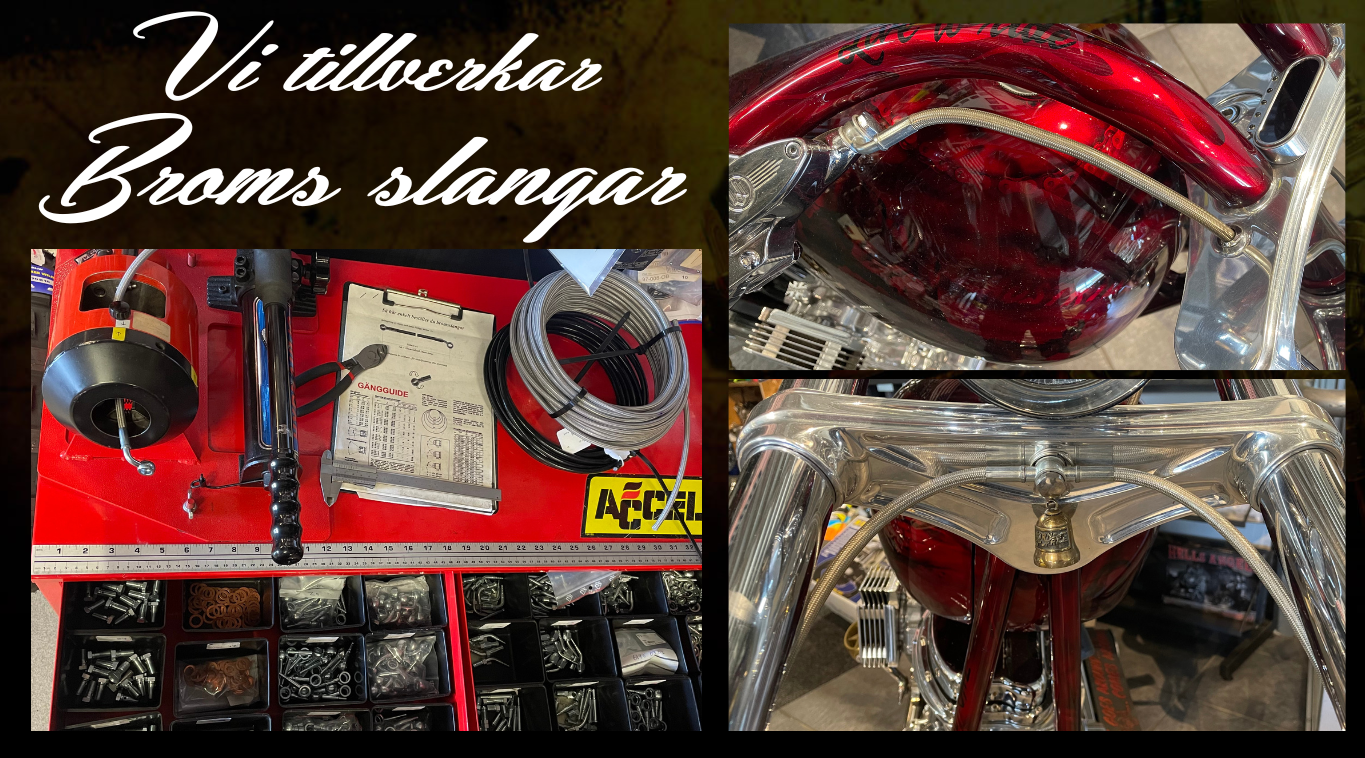 Detta är ett krav på amatörbyggda hojar men även bra att byta ut original gummislang då stål omspunna inte flexar och ger därmed bättre broms. Vår press är mobil så vi kan pressa en inbyggd slang nära objektet.