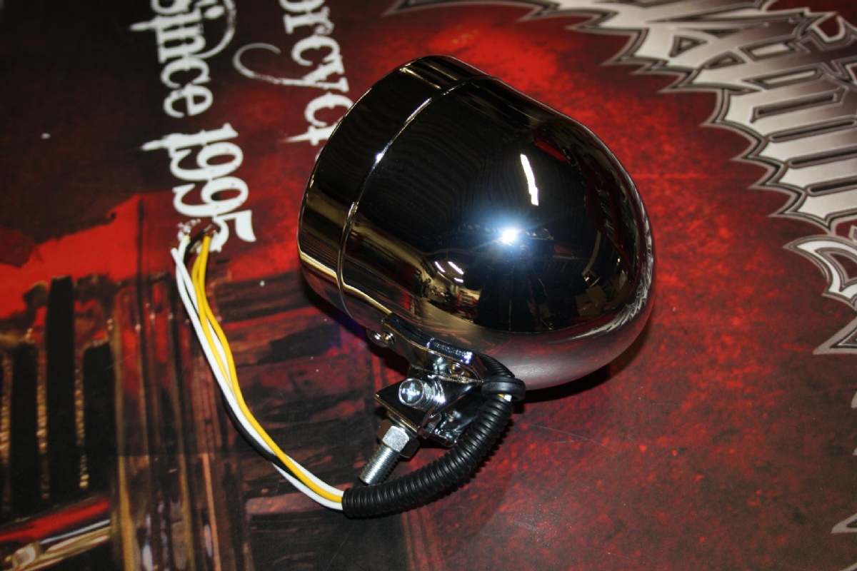 Top it off in style and add a custom touch to your bike with this chrome 4" diamond cut halogen headlamp.