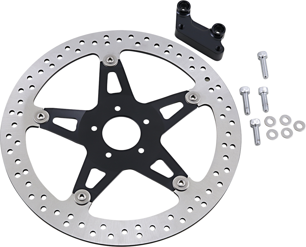 - Includes oversized floating stainless-steel rotor and billet brake caliper adapter and necessary hardware