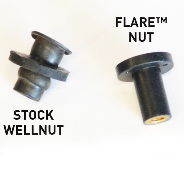 Klock Werks Flare® Nuts are the last set of well nuts you will need for your 1998-2013 Road Glide! Manufactured out of a superior material with a revolutionary design, including a metal washer molded into the flange, these well nuts for Road Glide motorcycles prevent the nut from pushing through the windshield mounting hole and ending up inside your fairing.
