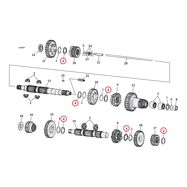 Used on both main and countershafts of 5-speed Big Twin and XL Sportster models.