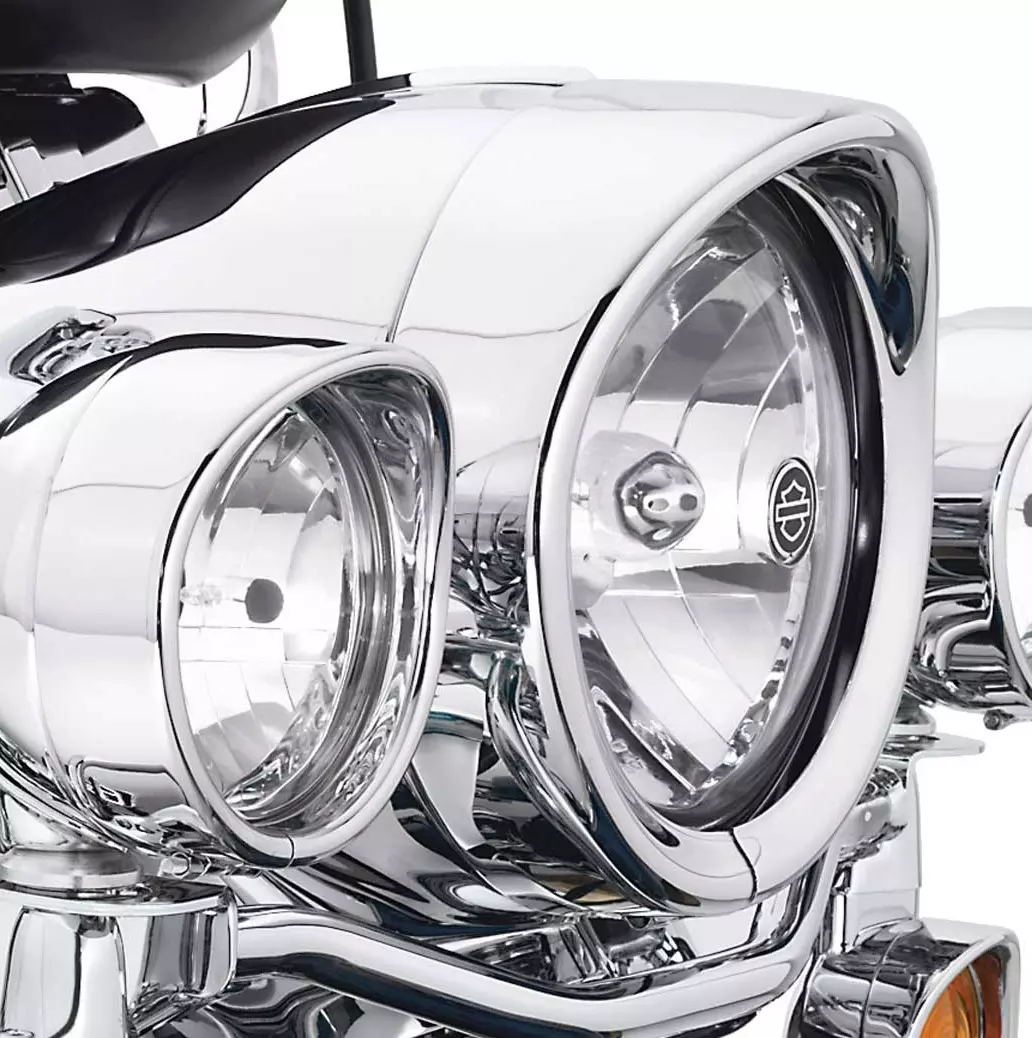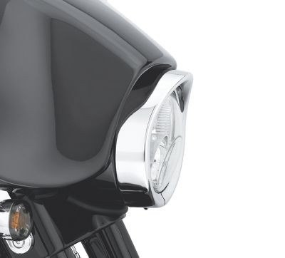 These chrome-plated Visor Style Trim Rings recess the headlamp into the housing, and add a traditional "eyebrow" design to the headlamp shell.